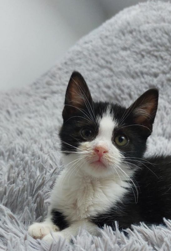 Obecnie przebywa w domu tymczasowym u jednej z naszych pracownic, tam uczy się kociego życia i… idzie mu doskonale!