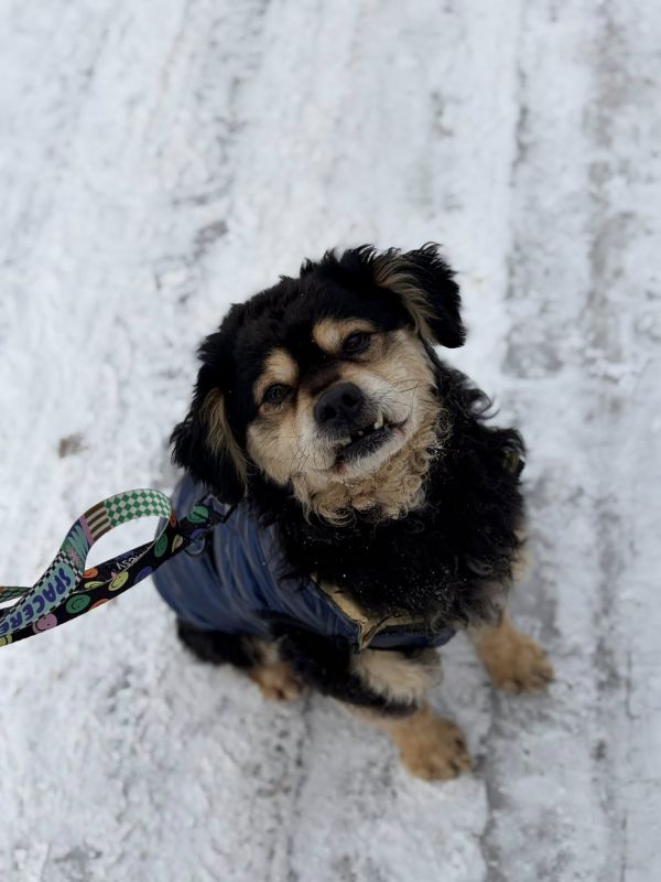 Jest pociesznym, średniej wielkości pieskiem (tak do kolana, na zdjęciach wygląda na większego, ale to złudzenie optyczne).