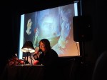 We czwartek w Teatrze Stygmator odbył się spektakl poetycko- muzyczny pod tytułem ,,Przemijanie" , prowadzony przez Violettę Zygmunt , a iustrowany między innymi moimi obrazami. Obraz pod tytułem,, Podróż "namalowałam 37 lat temu. Wtedy własnie w młodości, czułam potrzebę malowania przemijania ludzkiego życia, urody i starości. Na obrazie w przedziale pociągu siedzę ja - młoda i jem jabłko, a na przeciwko wyobrazenie mnie starej( czy będe tak wygladałą?) i czy dotrwam? Za oknem podróż i szybko mijający czas. Podróż to symbol i synonim życia.( zdjęcie jest złe, z lampą błyskową, bo takie to były czasy)Refleksja była, nie tylko w jednym obrazie, a w całej serii, ale zdjęcia obrazów z tych lat nie zachowały się, albo bardzo złe. Obraz drugi nosi tytuł,,Gdy ogród śpi" z 2020 roku. Spi w zimie, by z wiosną się odrodzić, a motyl... ten żyje krótko ale pięknie, O jego symbolice przepięknie mówiła Pani Violetta, kto słyszał, ten wie.