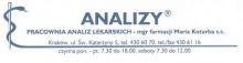 KRAKÓW ANALIZY UL.SW.KATARZYNY 5 CZYNNY PN.-PT. 7.30-18.00 SOBOTA 7.30-12.00 TEL.12 430 60 70