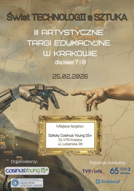 Już po raz trzeci Kraków stanie się przestrzenią spotkania młodych talentów, nowoczesnej edukacji i kreatywnych zawodów przyszłości. W środę, 25 lutego 2026 roku w siedzibie szkół CosinusYoung 15+ przy ul. Lublańskiej 38 (bud. A3), w godz. 10.00-14.00 odbędą się III Artystyczne Targi Edukacyjne – wydarzenie skierowane do uczniów klas siódm (...)