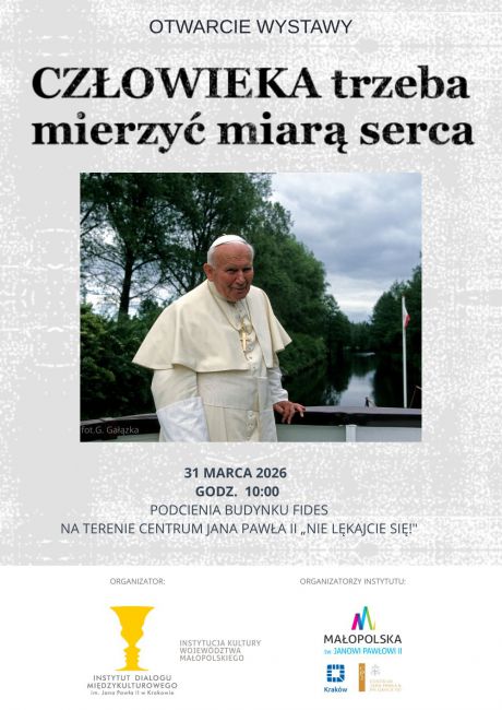 | Instytut Dialogu Międzykulturowego w Krakowie zaprasza na wystawę „Człowieka trzeba mierzyć miarą serca”. |