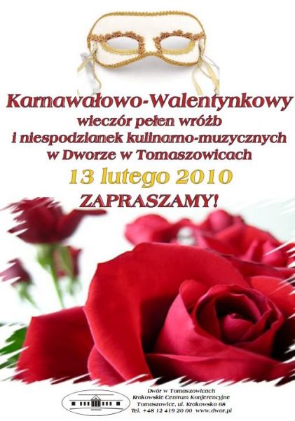 Karnawaowo - walentynkowy wieczr peen niespodzianek kulinarno-muzycznych w Dworze w Tomaszowicach