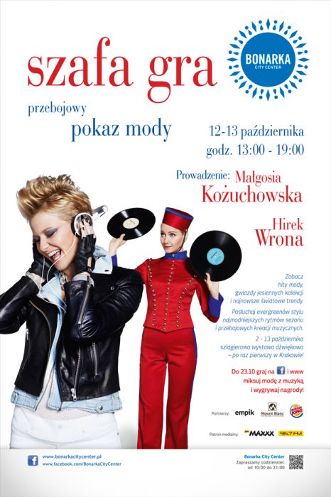 Hity mody oraz gwiazdy jesiennych kolekcji, stylowe fotografie oraz szlagierowa wystawa dwikowa, wreszcie: ikona stylu Magorzata Kouchowska oraz muzyczny ekspert Hirek Wrona. Bez dwch zda: najbliszy pokaz mody w Bonarce (12-13 padziernika) zapowiada si przebojowo!