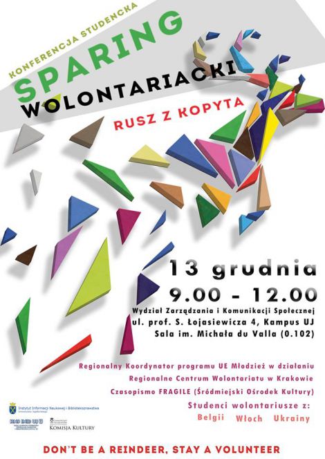 Jakie korzyci pyn z bezinteresownoci? Nie masz pomysu na poyteczne spdzenie kilku wieczorw lub wakacji? A moe po prostu zastanawiae si kiedy nad wstpieniem w szeregi organizacji lub akcji wolontariackiej? Jeeli masz jakiekolwiek wtpliwoci bd interesujesz si tym tematem koniecznie przyjd 13 grudnia na Sparing wolontariacki Rusz z kopyt(...) ... więcej » |
