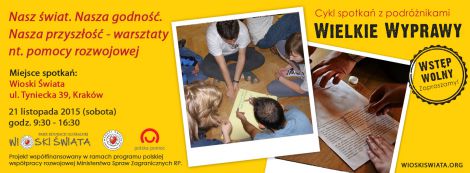 Zapraszamy 21 listopada 2015 roku, o godz. 9:30 do Wiosek wiata przy ul. Tynieckiej 39 na warsztaty Nasz wiat, nasza godno, nasza przyszo w czasie ktrych uczestnicy dowiedz si czym jest pomoc rozwojowa i w jaki sposb Polska j realizuje. W jaki sposb mona j osobicie realizowa oraz dlaczego pomoc rozwojowa jest waciwie potrzebna.