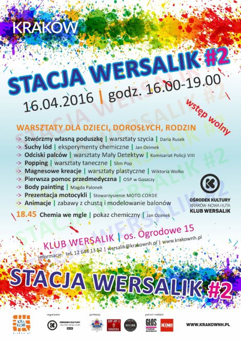 Pocig Kultura ju po raz drugi zatrzyma si na Stacji Wersalik. W sobot 16 kwietnia w godz. 16.00-19.00 w Klubie Wersalik Orodka Kultury Krakw-Nowa Huta dzieci, modzie, doroli i cae rodziny bd mogli wzi udzia