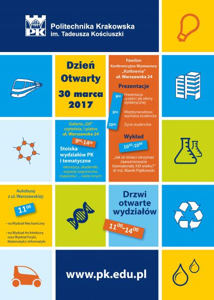 Politechnika Krakowska im. Tadeusza Kociuszki serdecznie zaprasza na Dzie Otwarty, ktry odbdzie si w czwartek 30 marca br.