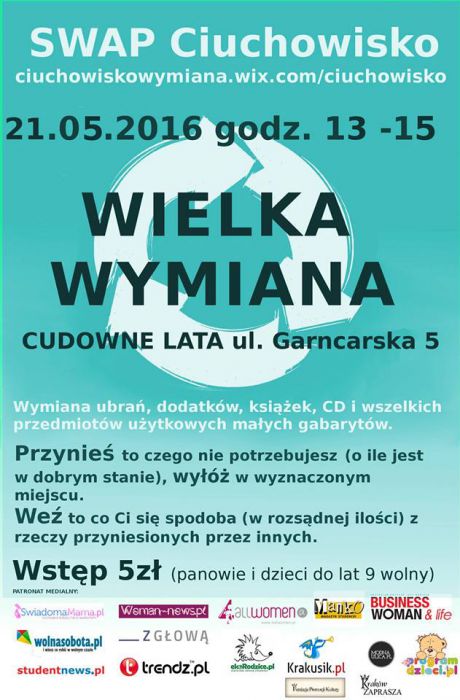 Kolejna edycja szalonej wymiany ubra i dodatkw czyli Krakowskiego Ciuchowiska. Widzimy si w Kawiarni Cudowne Lata (ul. Garncarska 5).