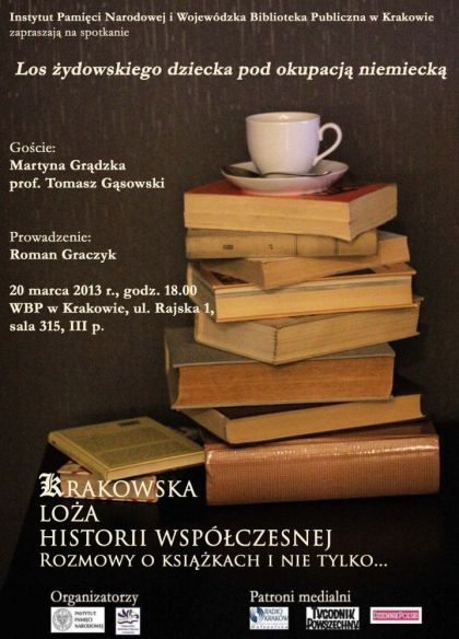Instytut Pamici Narodowej oraz Wojewdzka Biblioteka Publiczna w Krakowie zapraszaj na spotkanie Los ydowskiego dziecka pod okupacj niemieck. W dyskusji wemie udzia Martyna Grdzka oraz prof. Tomasz Gsowski. Spotkanie poprowadzi Roman Graczyk.