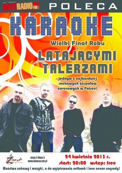 W niemale kad rod od padziernika do kwietnia studenci mieli moliwo wzicia udziau w studenckim karaoke, ktre odbywao si w aczku. Teraz przyszed czas na wielkie podsumowanie i FINA nie byle jaki z udziaem jednego z najbardziej rockowych zespow coverowych w Polsce, czyli z LATAJCYMI TALERZAMI!