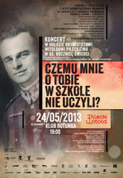 Stowarzyszenie PASSIONART, Stowarzyszenie ROUNDA, Muzeum Armii Krajowej w Krakowie oraz Towarzystwo Przyjaci im. dra H. Jordana, pod honorowym patronatem Instytutu Pamici Narodowej, zapraszaj na koncert, ktrym zamierzaj przypomnie o Rotmistrzu. Zgromadzona publiczno bdzie moga uczestniczy w niepowtarzalnej lekcji historii i patriotyzmu przeprowadzonej przy zastosowaniu niepowtarzalnej formy: poczeniu hip-hopu z orkiestr symfoniczn, chrem i solistami.