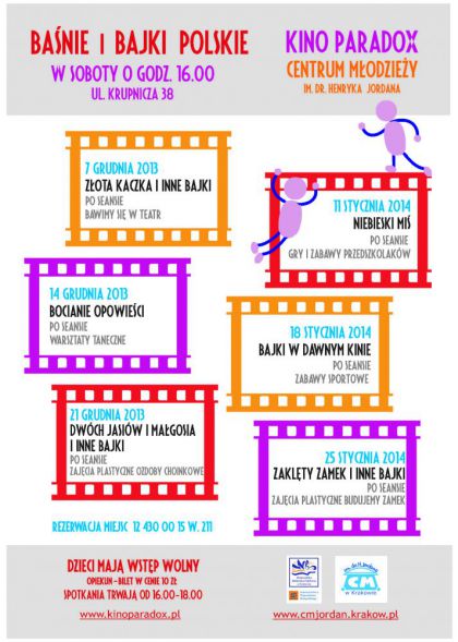 Spotkania filmowe trwaj okoo 60 minut (w programie zagadki, sodki poczstunek i filmy), zajcia dodatkowe po seansie 45 min.