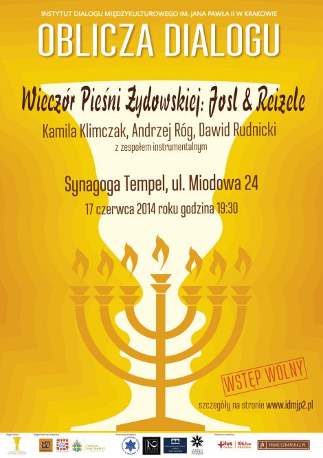 Zapraszamy na wieczr pieni ydowskiej JOSL&REIZELE w Synagodze Tempel w Krakowie.