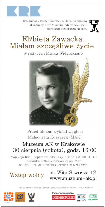Dyskusyjny Klub Filmowy im. Jana Karskiego zaprasza na pokaz filmu "Elbieta Zawacka. Miaam szczliwe ycie" w reyserii Marka Widarskiego, ktry odbdzie si w sobot 30 sierpnia o godz. 16:00.