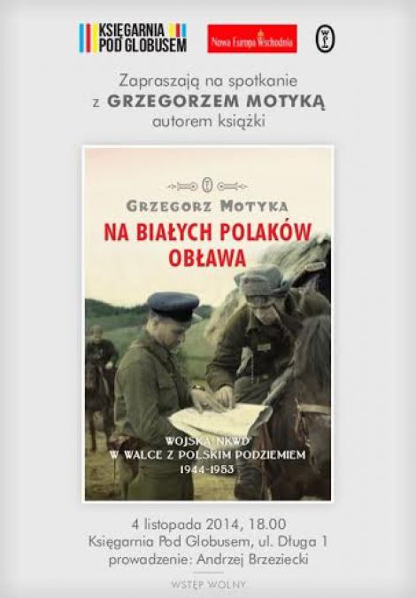 Nowa Europa Wschodnia zaprasza na spotkanie z Grzegorzem Motyk, autorem ksiki Na Biaych Polakw obawa. Wojska NKWD w walce z polskim podziemiem 1944-1953. Dyskusja odbdzie si 4 listopad (wtorek) o godz. 18.00 w Ksigarni Pod Globusem (Krakw, ul. Duga 1).