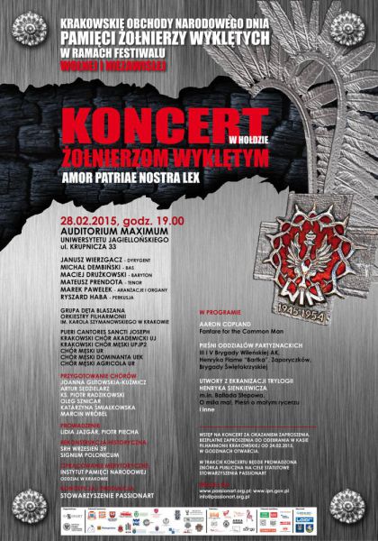 Oddzia Instytutu Pamici Narodowej w Krakowie oraz Stowarzyszenie PASSIONART zapraszaj na koncert galowy w Hodzie onierzom Wykltym w dniu 28 lutego br.