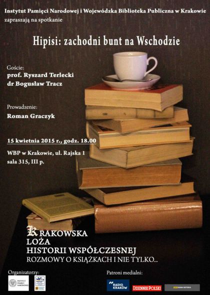 Instytut Pamici Narodowej oraz Wojewdzka Biblioteka Publiczna w Krakowie zapraszaj na spotkanie Hipisi: zachodni bunt na Wschodzie. W dyskusji wezm prof. Ryszard Terlecki oraz dr Bogusaw Tracz. Spotkanie poprowadzi Roman Graczyk.