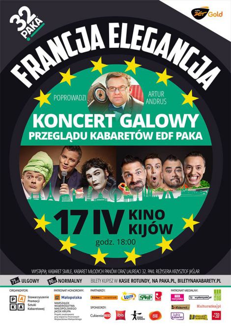 Paryski szyk na scenie Kina Kijw zaprezentuj, witujcy niedawno dziesiciolecie dziaalnoci Kabaret Modych Panw i bijcy rekordy popularnoci Kabaret Smile. Obok nich laureaci tegorocznej PAKI poka si w zwyciskich numerach i specjalnie przygotowanych na t okazj skeczach. Piecz nad caoci sprawowa bdzie Krzysztof Jalar reyser od lat zwizany z PAK, za cay koncert poprowadzi znany ze stylu i klasy Artur Andrus. Serce miejcej si Europy bije w Krakowie na PACE!