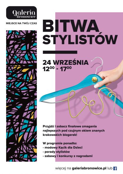 Dla wszystkich, ktrzy lubi bawi si mod i stylem, codziennie zaskakuj otoczenie fantastycznymi pomysami, Galeria Bronowice przygotowaa nietypowy konkurs. Wystarczy przygotowa wasn, autorsk stylizacj i zgosi si do Bitwy Stylistw, ktra ju niebawem odbdzie si na terenie centrum handlowego. Zgoszenia konkursowe naley przesya do 19 wrzenia.