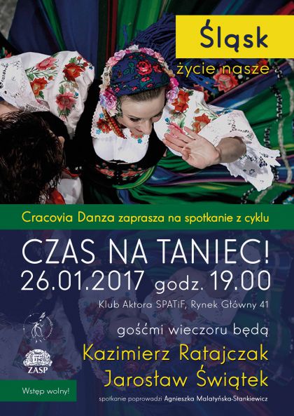 Zesp Pieni i Taca LSK bdzie bohaterem najbliszego spotkania CZAS NA TANIEC! organizowanego w ramach cyklu Cracovia Danza. O historii zespou, codziennej pracy, wyjazdach, naborach, radociach i rozczarowaniach opowiedz Kazimierz Ratajczak, kierownik artystyczny zespou lsk oraz Jarosaw witek, kierownik baletu. Spotkanie, ktre otrzymao tytu lsk, ycie nasze odbdzie si w czwartek 26 stycznia o godz. 19 w Klubie Aktora SPATiF, Krakw, Rynek Gwny 41.