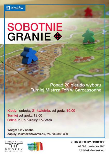Podczas tej edycji Sobotniego Grania odbdzie si turniej o tytu Mistrza To w Carcassonne. (zasad bdzie mona nauczy si w czasie spotkania!)