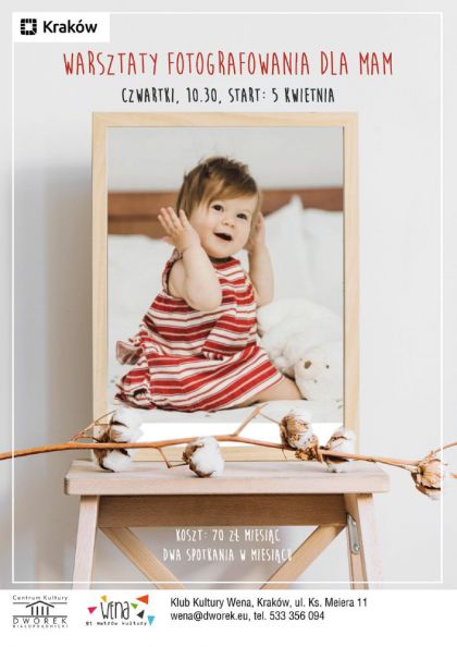 Rozpoczynamy kurs fotografii dla rodzicw z dziemi. Dwa razy w miesicu bdziemy si spotyka na warsztatach z dowiadczon fotografk Joann Kucharsk, specjalizujc si w fotografowaniu dzieci. Prowadzca kolejno porusza bdzie kwestie fotografii portretowej z uwzgldnieniem specyfiki fotografowania dzieci. Kade zajcia trwa bd 1-1,5h w zalenoci od cierpliwoci modeli. Koszt zaj 70z/osoba/miesic.