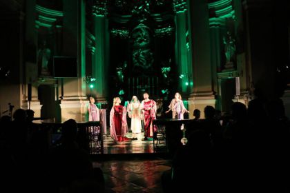 Kantata sceniczna Jana Sebastiana Bacha "Ich geh'und suche " to wysublimowane poczenie muzyki i piewu, z elementami gry aktorskiej, kompozycji ruchu scenicznego oraz oryginalnego kostiumu. Muzyczna tkanka opiera si na mistrzowskich kantatach J.S. Bacha - wybrane fragmenty, poczwszy od BMV 155 Mein Gott wie lang, ach Lange, poprzez BMV 103, 32 do BMV 49 Ich geh und suche mit Verlangen (Chodz i szukam z tsknym pragnieniem). Kunsztowne partie wokalne i instrumentalne wzmocnione s dialogami prowadzonymi przez aktorw (fragmenty z Ksigi Psalmw).