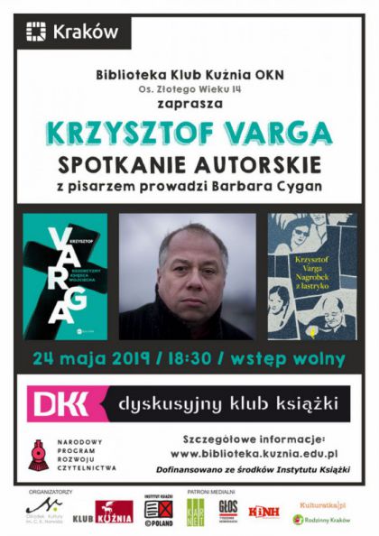 Spotkanie z pisarzem Krzysztofem Varg - trzykrotnym finalist Nagrody Literackiej Nike. Prowadzenie: Barbara Cygan. Wstp wolny.