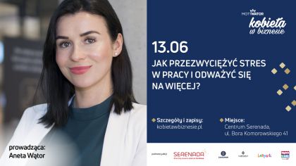 Spotkanie Jak przezwyciy stres w pracy i odway si na wicej? odbdzie si ju 13czerwca, od 17.00 do 21.00 w krakowskiej Serenadzie w ramach projektu Kobieta wbiznesie. To propozycja dla wszystkich pa, ktre chc si rozwija, zainspirowa i osign swoje cele. Podczas wydarzenia uczestniczki bd miay niepowtarzaln okazj pozna wyjtkowe kobiety takie jak Aneta Wtor, Urszula Rowiska czy Aleksandra Bacaska oraz wysucha wykadw dotyczcych savoir vivre w biznesie, rozwoju osobistego oraz zagroe zwizanych z wypaleniem zawodowym. Wszystkie panie czeka merytoryczny wykad, inspirujce wywiady z kobietami sukcesu i zestaw konkretnych narzdzi do rozwoju firmy.