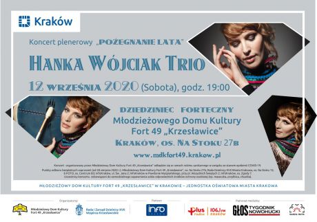 W dniu 12 wrzenia (sobota) 2020, o godz. 19.00 na plenerowej scenie MDK Fort 49 Krzesawice, Krakw, os. Na Stoku 27b odbdzie si plenerowy koncert