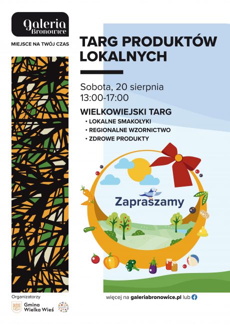 Już 20 sierpnia Galeria Bronowice, wspólnie z Gminą Wielka Wieś, zaproszą krakowian na pełen pyszności i oryginalnych rękodzieł Wielkowiejski Targ. Tego dnia, w godz. 13.00-17.00, na terenie centrum handlowego w strefie pod ringiem (poziom 0), pojawi się aż 9 stanowisk.