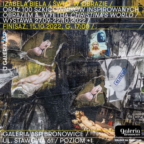 Pod koniec września w Galerii ASP, która mieści się na pierwszym piętrze Galerii Bronowice, pojawiła się nowa wystawa „Świat w obrazie”. Punktem wyjścia i inspiracją dla projektu, a także zrealizowanych w jego ramach prac artystycznych jest obraz amerykańskiego malarza Andrew Wyetha „Świat Christiny”.