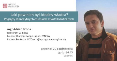 Instytut Konfucjusza w Krakowie serdecznie zaprasza w czwartek 20 października o godz. 16:45 na wykład Adriana Brony: Jaki powinien być idealny władca? Poglądy starożytnych chińskich szkół filozoficznych.