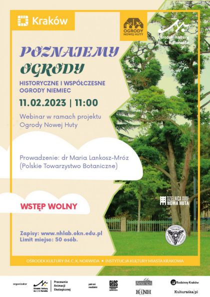 Historyczne i współczesne ogrody Niemiec. Webinar w ramach projektu Ogrody Nowej Huty. Prowadzenie: dra Maria Lankosz-Mróz
