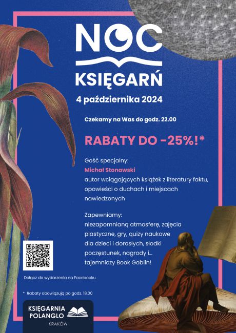4 października odbędzie się jedna z najbardziej wyczekiwanych imprez w kalendarzu miłośników literatury – Noc Księgarń 2024. W całym kraju księgarnie otworzą swoje drzwi na noc pełną literackich atrakcji, warsztatów i niespodzianek. W Krakowie to wydarzenie zyska wyjątkowy wymiar, ponieważ Księgarnia Polanglo przy ul. Krupniczej 14 zaplanowała wieczór pełen literackich zagadek, tajemnic i spotkań z lokalnymi twórcami. Gościem specjalnym wydarzenia będzie Michał Stonawski, krakowski pisarz i badacz zjawisk paranormalnych, który podzieli się swoją fascynacją nawiedzonymi miejscami. Wszystko to w towarzystwie tajemniczego Book Goblina – postaci, która ukrywa się w zakamarkach krakowskiej księgarni.