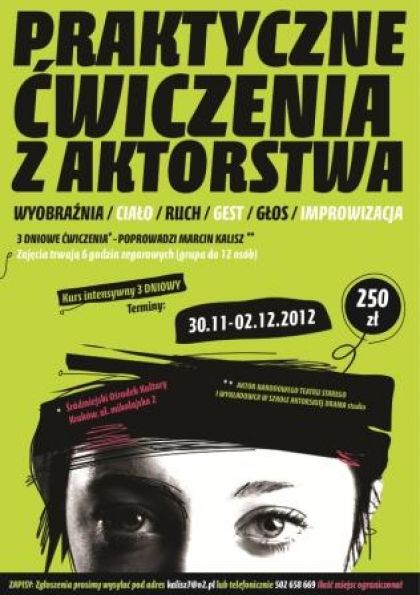 Intensywne, trzydniowe, Praktyczne Ćwiczenia z Aktorstwa.