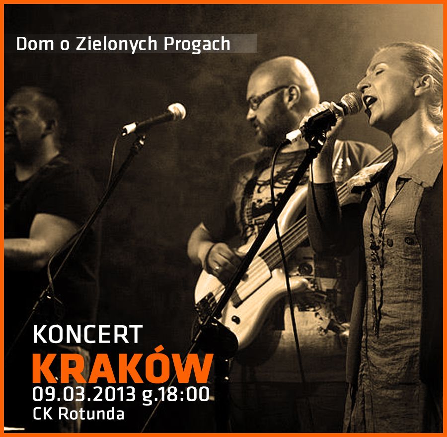 DOM O ZIELONYCH PROGACH to zespół dobrze już znany uczestnikom koncertów W górach jest wszystko co kocham w KRAKOWIE. Regularnie występował w CK Rotunda w ramach wspomnianego cyklu artystycznego przycišgajšc tłumy słuchaczy. Tym razem zespół przyjeżdża do Krakowa z własnym koncertem. Szykuje się długi i klimatyczny koncert, który ma być prezentem dla fanów zespołu z Krakowa. Dotychczas bowiem, przez kilka ostatnich lat, w Krakowie, zespół grywał praktycznie krótkie recitale w ramach projektu W górach…
