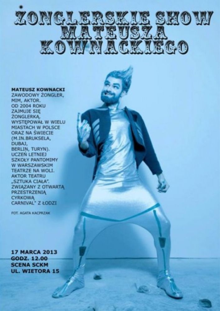 17 marca 2013, godz. 14.3018.00 pokaz i warsztaty kuglarskie z Mateuszem Kownackim,