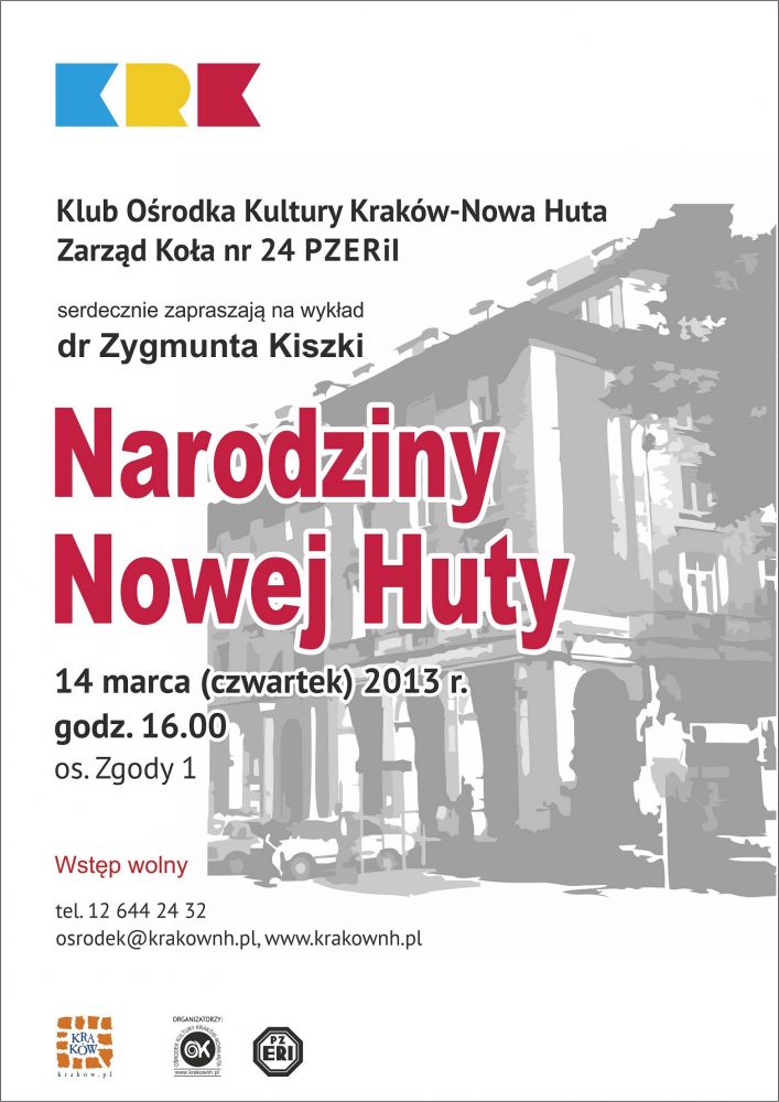 Wykład odbędzie się 14 marca br. o godz. 16.00 w Klubie Orodka Kultury Kraków-Nowa Huta (os. Zgody 1).