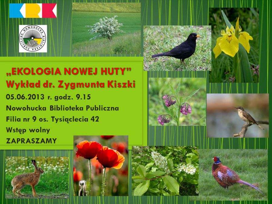 Nowohucka Biblioteka Publiczna w Krakowie realizuje projekt pn. W przyjani z natur, dofinansowany ze rodkw Urzdu Miasta Krakowa, pochodzcych z opat i kar za korzystanie ze rodowiska.
