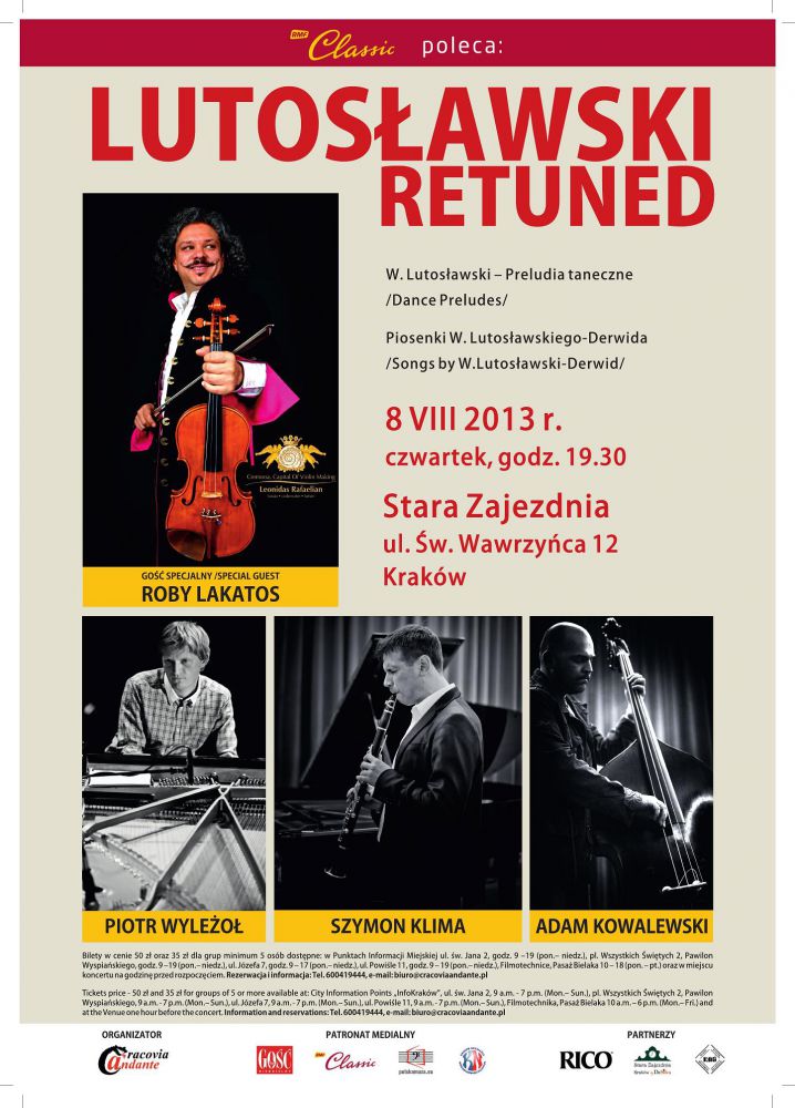 Na program koncertu składajš się Preludia taneczne w oryginale napisane przez Witolda Lutosławskiego na klarnet z fortepianem, które dzięki interpretacji muzyków zyskajš nowe, niepowtarzalne brzmienie i oryginalnš interpretację nieklasycznš z licznymi improwizacjami jazzowymi. Gociem specjalnym koncertu będzie Roby Lakatosa, który wraz z Trio zaprezentuje utwory komponowane przez Lutosławskiego pod pseudonimem Derwid.