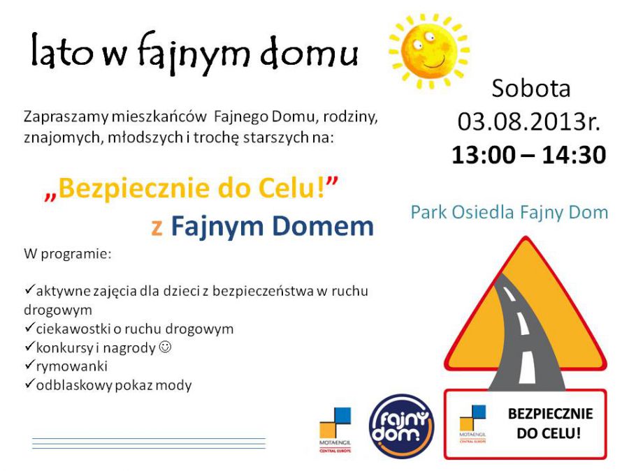 W najbliższy weekend bawimy się z Bezpiecznie do celu, którego założeniem jest kształtowanie prawidłowych nawyków dzieci i młodzieży na drodze. Przez zabawę, konkursy, prezentacje uczymy się, jakie zachowania na drodze i nie tylko będš bezpieczne dla nas i współuczestników.