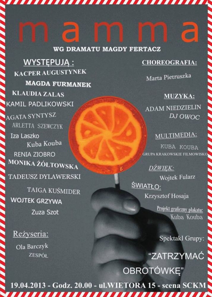Reżyserii podjęła się Aleksandra Barczyk z całym zespołem. Na deskach Sceny SCKM wystšpiš: Arletta Szewczyk, Wojtek Grzywa, Kamil Padlikowski, Kuba Kouba, Kacper Augustynek, Renia Ziobro, Magda Furmanek, Taiga Kumider, Tadeusz Dylawerski, Zuza Szot, Karolina Bondaronek. Choreografię przygotowała Marta Pietruszka, a oprawę muzycznš Adam Niedzielin i DJ Owoc