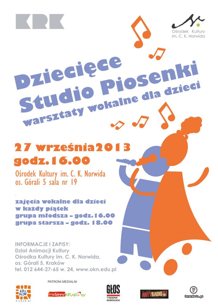 Serdecznie zapraszamy dzieci na zajęcia wokalne do Dziecięcego Studia Piosenki przy Orodka Kultury im. C. K. Norwida.