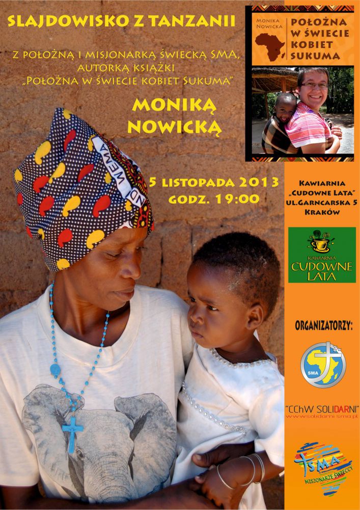 Centrum Charytatywno-Wolontariackie Solidarni zaprasza na "Slajdowisko z Tanzanii". Będzie to spotkanie z Monikš Nowickš, autorkš ksišżki "Położna w œwiecie kobiet Sukuma". Jak sama autorka mówi: "To niesamowite wstać rano i nie wiedzieć, jak i kiedy ten dzień się skończy, a przede wszystkim, w co dziœ włożę swoje niezgrabne ręce. Tak przeżyłam równo 908 wspaniałych i niepowtarzalnych dni w Tanzanii, służšc jako misjonarka œwiecka Stowarzyszenia Misji Afrykańskich i położna na misji Bugisi wœród plemienia Sukuma. Nie opowiem Wam o całej Afryce, a tylko o jej małym kawałku, o paru ludziach, o kilku momentach i cudach, których byłam œwiadkiem. Zabiorę Was w podróż po półpustynnym Bugisi, które jest poligonem, stajenkš betlejemskš i domem." Zapraszamy!!!