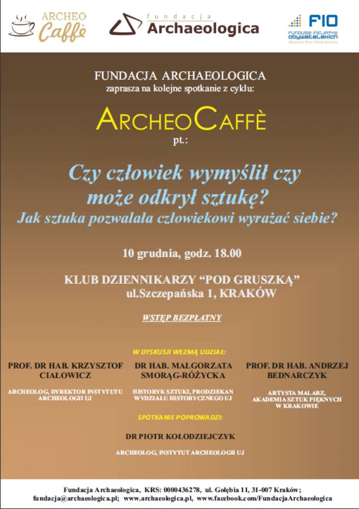 W trakcie trzeciego już spotkania z cyklu ArcheoCaffe zastanowimy się między innymi nad tym, kiedy i dlaczego człowiek zaczšł interesować się działalnociš twórczš, jakie czynniki miały wpływ na jej kształt oraz co można wywnioskować badajšc dzieła sztuki z przeszłoci.
