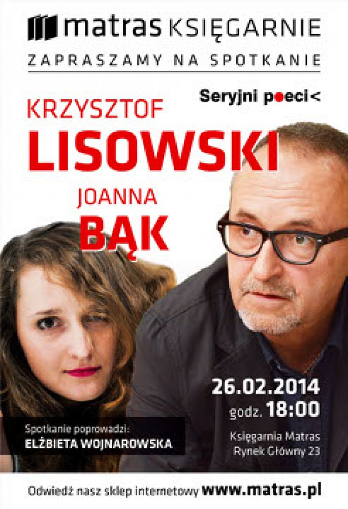 Księgarni Matras w Krakowie (Rynek Główny 23) – najstarszej księgarni w Europie, liczšcej sobie 404 lata, odbędzie się kolejne spotkanie literackie z cyklu : „Mistrz i Uczeń”, a bohaterami wieczoru będzie : jako Mistrz – znakomity poeta Krzysztof Lisowski, oraz młoda poetka – Joanna Bšk.