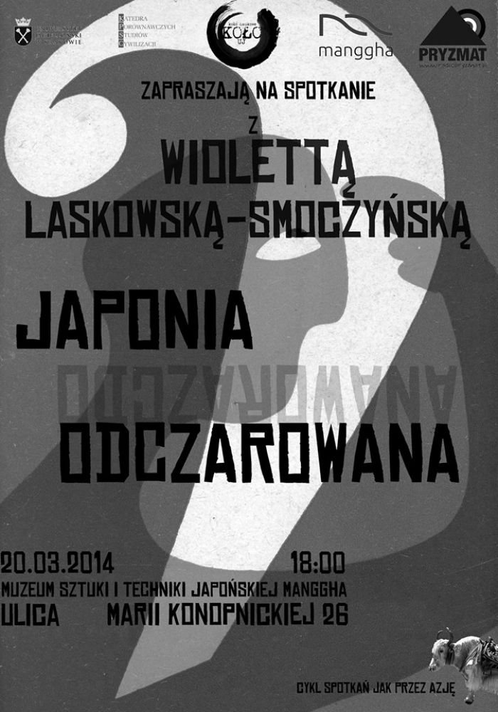Spotkanie z Wiolettš Laskowskš-Smoczyńskš jest czwartym spotkaniem z serii JAK przez AZJĘ. 20 marca będziemy gocić w muzeum Muzeum Sztuki i Techniki Japońskiej Manggha, gdzie nasz goć Wioletta Laskowska-Smoczyńska opowie o swoich japońskich fascynacjach, o podróżach i o dwuipółletnim pobycie w tym kraju. Mamy nadzieję, że Wioletta Laskowska otworzy nam oczy na prawdziwš Japonię i pomoże zbadać kraj pełen sprzecznoci i piękna, w którym tylko nieliczni podróżnicy umiejš dotrzeć do jego kulturowego kręgosłupa.