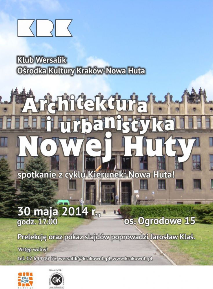 Klub Wersalik Orodka Kultury Krakw-Nowa Huta (os. Ogrodowe 15) zaprasza 30 maja 2014 r. o godz. 17.00 na kolejne spotkanie z cyklu Kierunek: Nowa Huta!